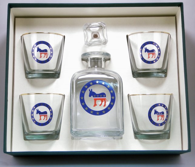 Democrat, Decanter Set w/4 Tapered Old Fashioned, gift Boxed - Click Image to Close