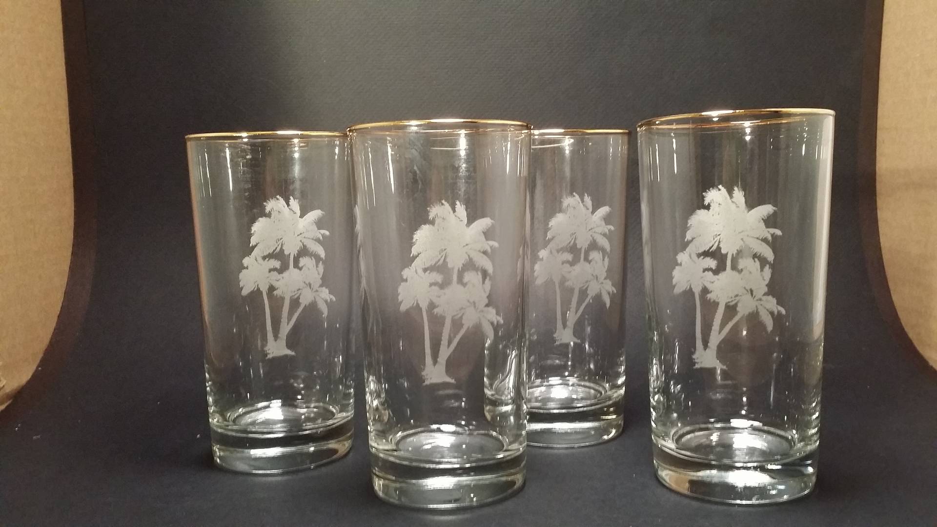 Old Palm Beach Retro Cocktail Bar Glasses from Dann, Vintage look Palm Trees, Loop Optic Handblown Glassware