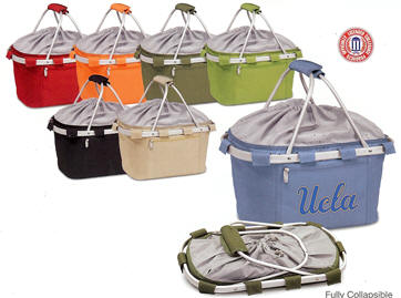 Our Collegiate Logo Collection of Picnic Baskets...Insulated Totes...Picnic Tables...all with the logo of your favorite University... helps you get your wine, hors' doerves, and dinner there in style.