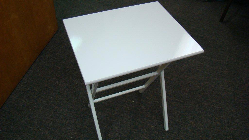 Snack Tables & TV Trays from Dann Practical and Timeless for your Den or Living Room. Perfect for Housewarming or Wedding gift. The possibilities are endless of who would enjoy this as a gift. An Enduring concept....collapsible Tray Tables ready at a moment's notice. Four Great finishes.....including Contemporary Black......and new All White ! Practical as an End Table for someone on the move ! Dennis & Joan